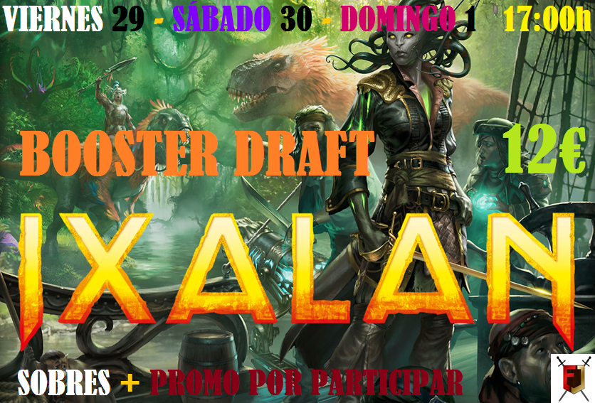 Inscripción: 15€ Formato: Draft Se jugara con 4 sobres Premios: 1 sobre de Ixalan por ronda ganada Fatal push para el top 5